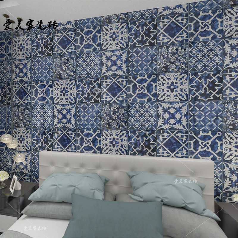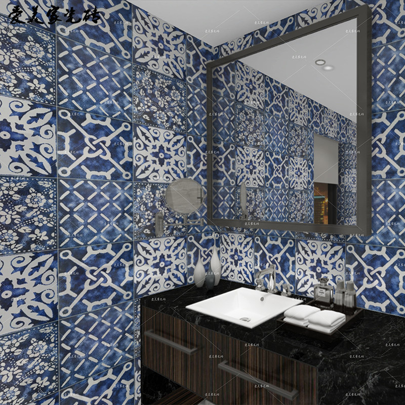 300 Deep Sea Blue Geometry Dining Room KTV Anti - Slider Anti - Slide - tile Kitchen Bathroom Background wall tile tiles