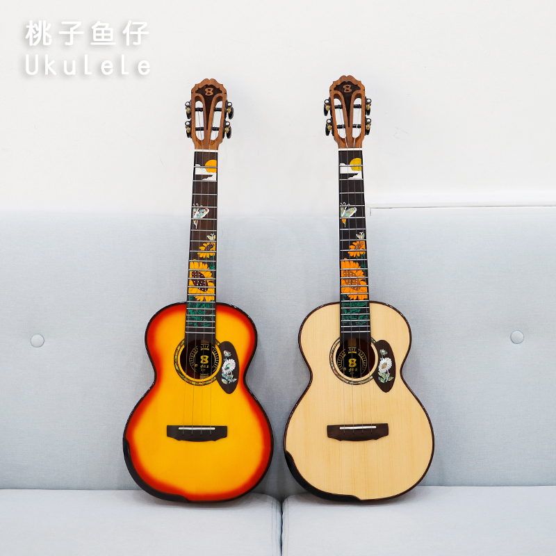 Sunshine 80T Spruce Rosewood Full Single Sunset Red Advanced Fingerstyle Ukulele Peach Fish
