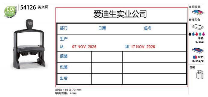 Zhuda Date Chapter Large number 116X70mm profprofessional 54126 tandem with double date back ink seal