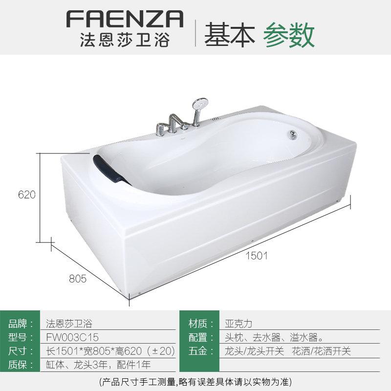 Farnsa bathtub Home Adult Acrylic Small Family type General bathtub square 1 5 m -1 7 m tub