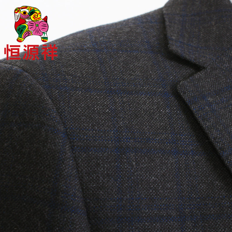 Hengyuan Xiangcai Sheep Business Wool Casual West Suit Men's Spring Autumn New Grey Plaid and Casual Suit Jacket