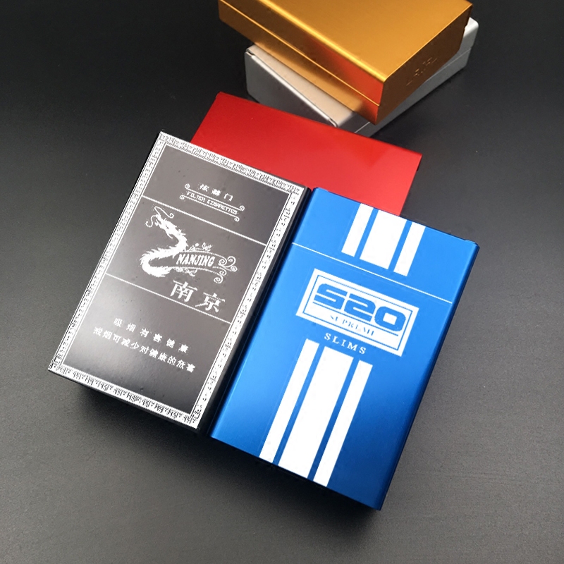 Cigarette case creative 20 slide cover carry-on cigarette pack personality cigarette case ultra-thin portable aluminum alloy automatic spring cover cigarette cover tide