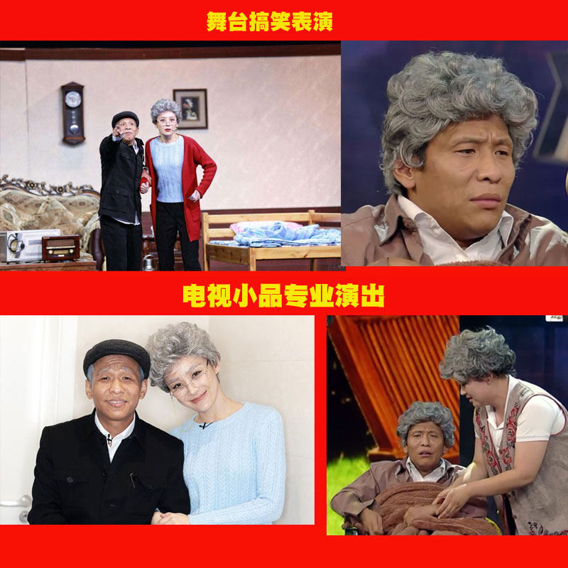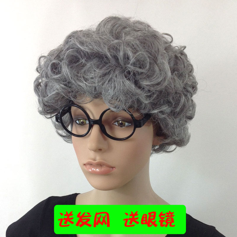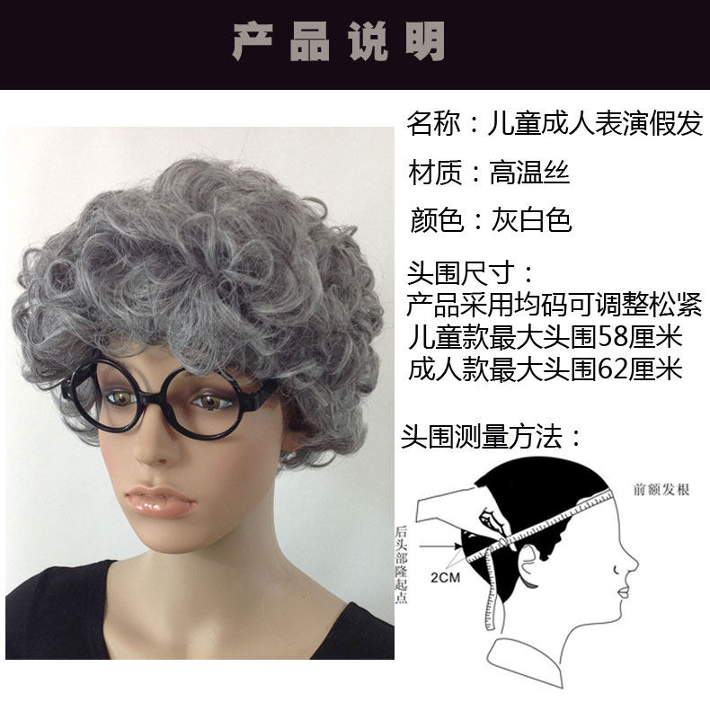 Children's Wig Playing Dad Wig Men's Stage Little Pint Performance Adults Short Curly Hair Granny Grey Mom Wig Women-Taobao