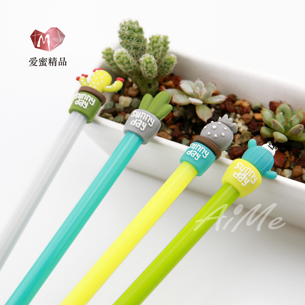 Korean creative cute neutral pen cartoon cactus pen student signature pen small fresh water pen black water-based pen