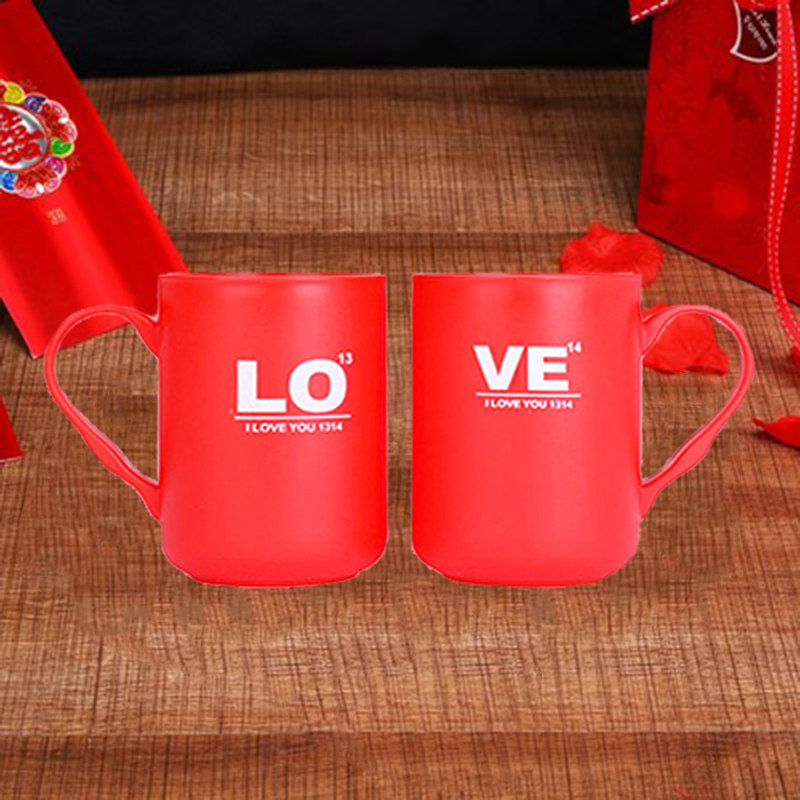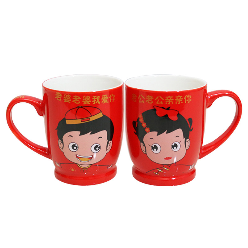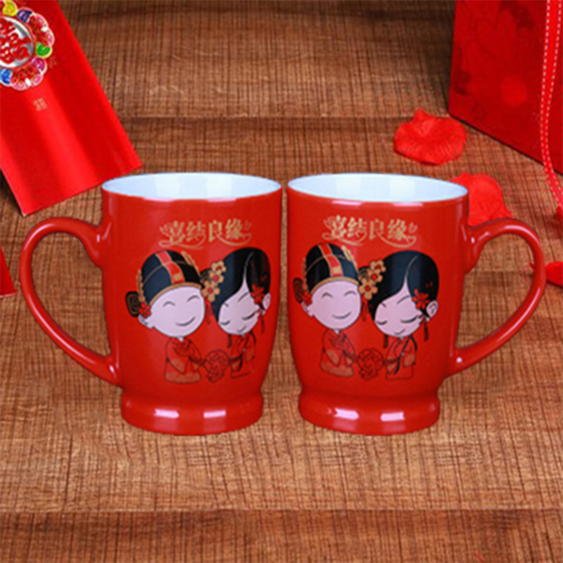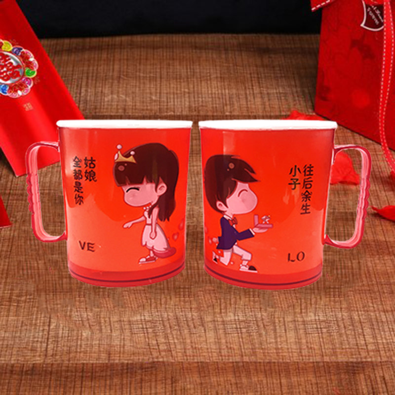 Wedding Supplies Marriage Gargle Cup Plastic Tooth Cup Couple Pair Cup Suit Red Ceramic Tooth Vat Woman to Marry Festive