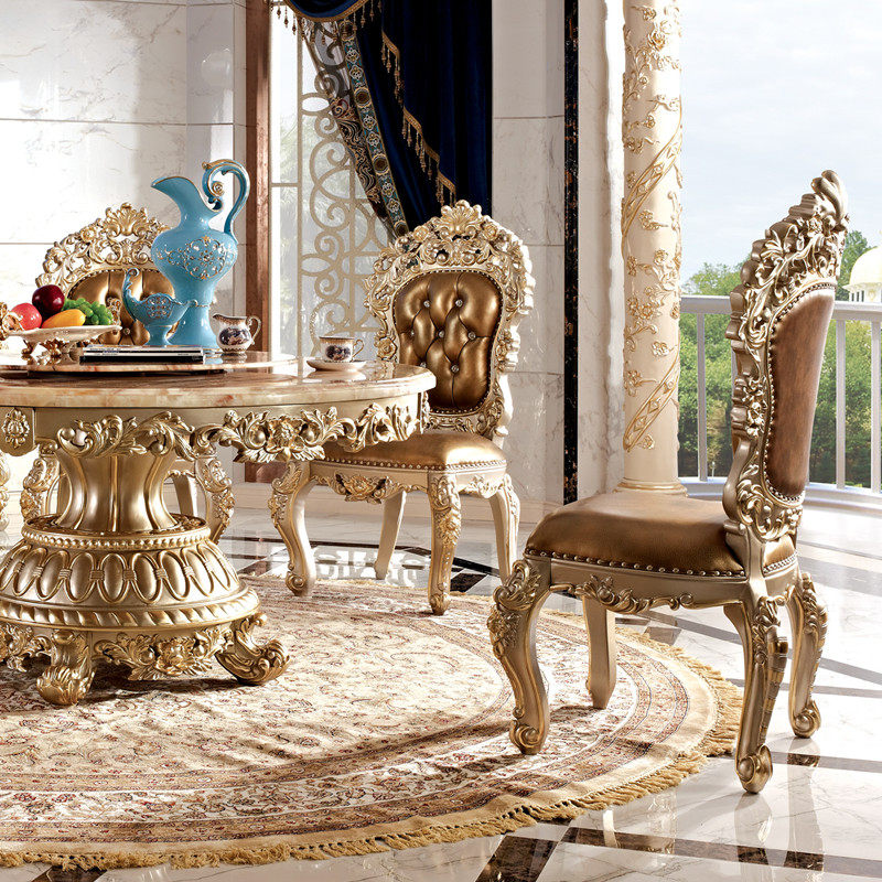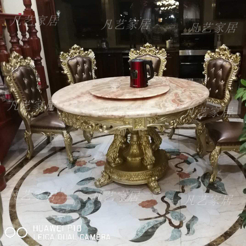 Marble round dining table second floor with turntable dining table dining room furniture 6 people household round table European dining table and chair combination