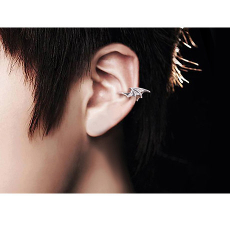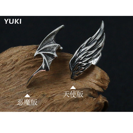 YUKI niche designed 925 pure silver ear clip ear bone clamp INS male and female couple angel demon silver jewelry