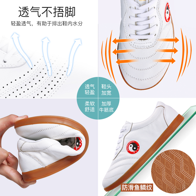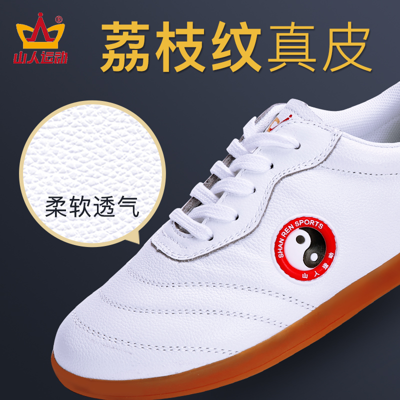 Mountain People Sports Tai Chi Shoes Bull Gluten Bottom Genuine Leather Women Soft Bull Leather Martial Arts Practice Shoes Spring Autumn Sports Men's Taijiquan Shoes