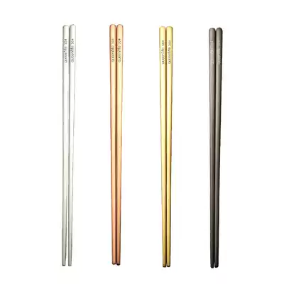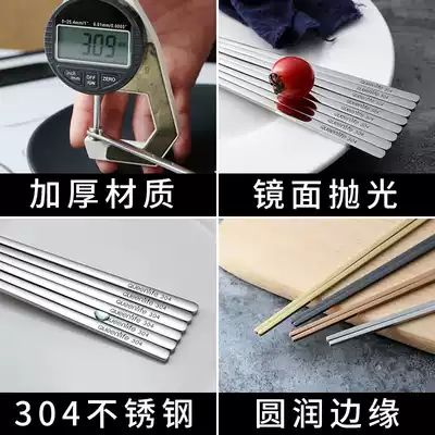 Korean 304 stainless steel titanium alloy solid flat chopsticks Korea thick non-slip home high-grade 5 pairs of home chopsticks