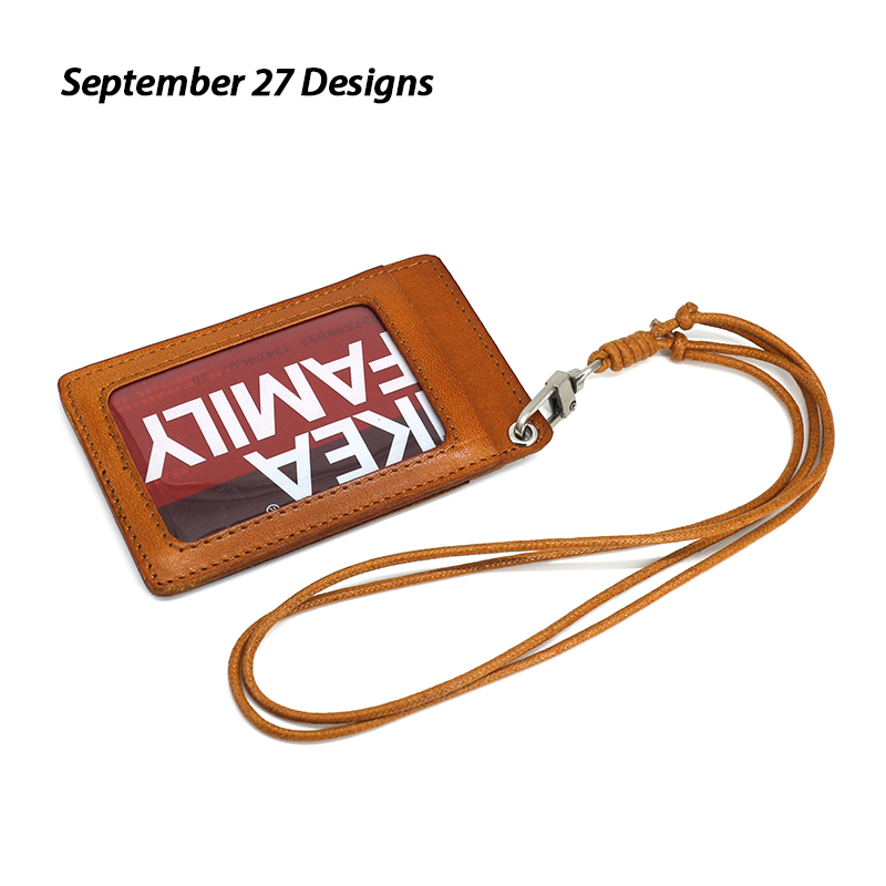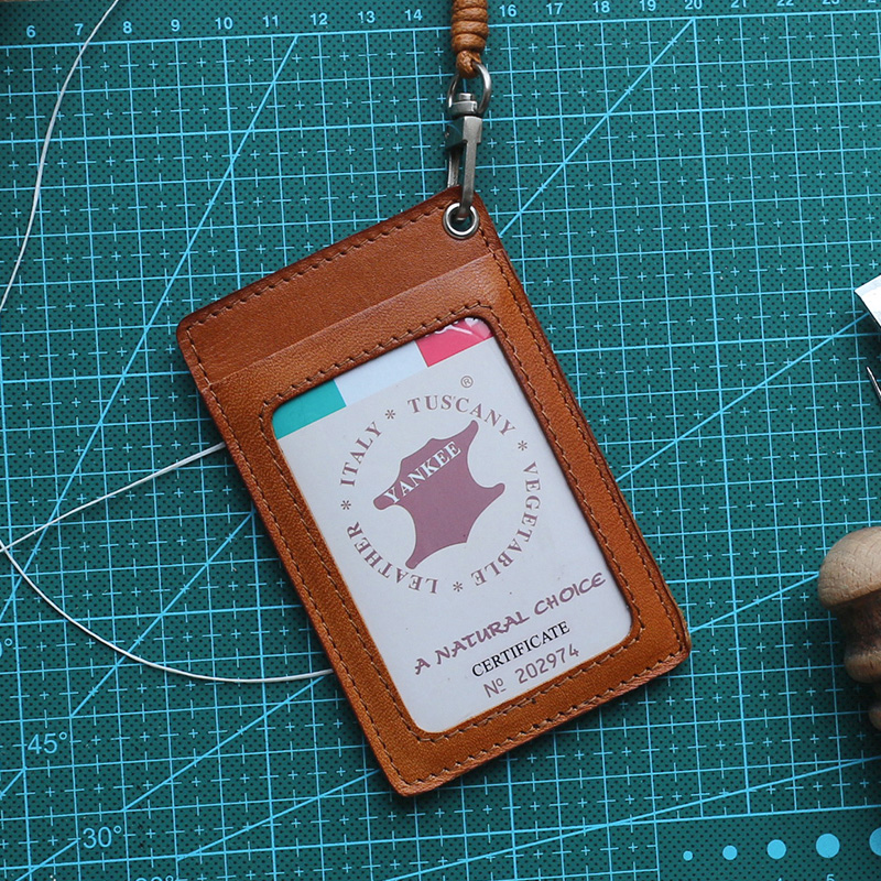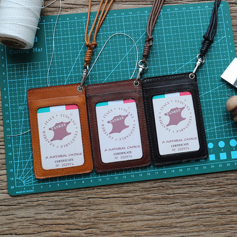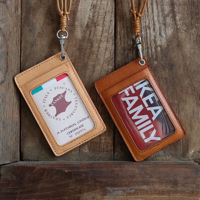 Japan and South Korea original vegetable tanned cowhide ID card set handmade leather neck rope retro ID set badge work card tide