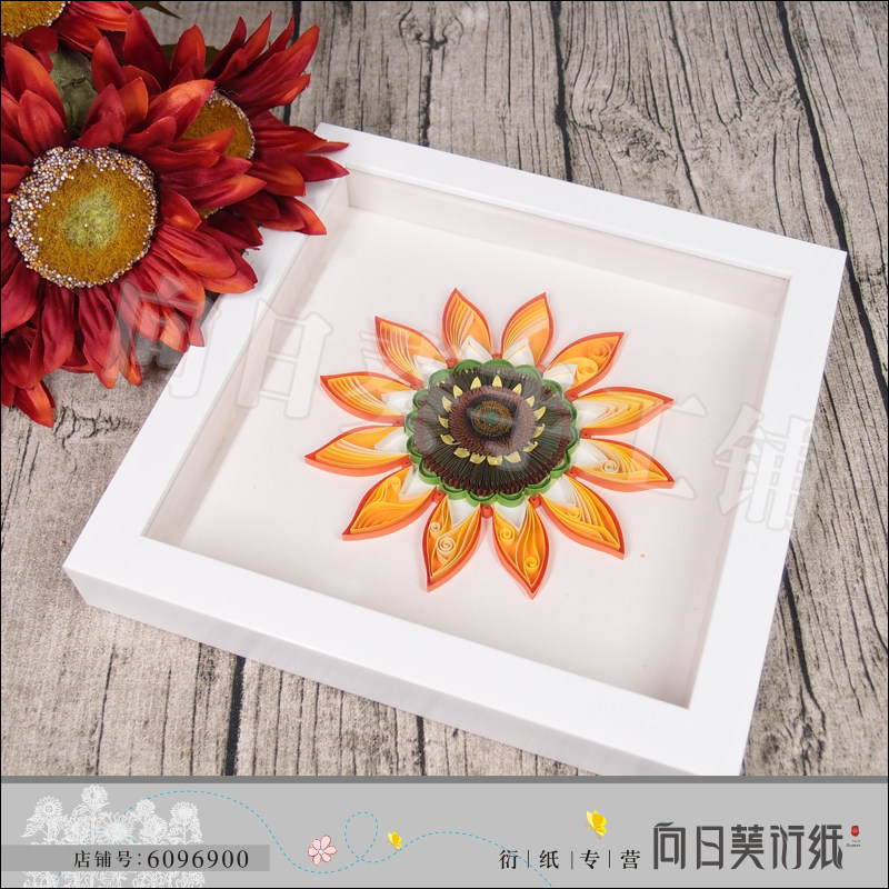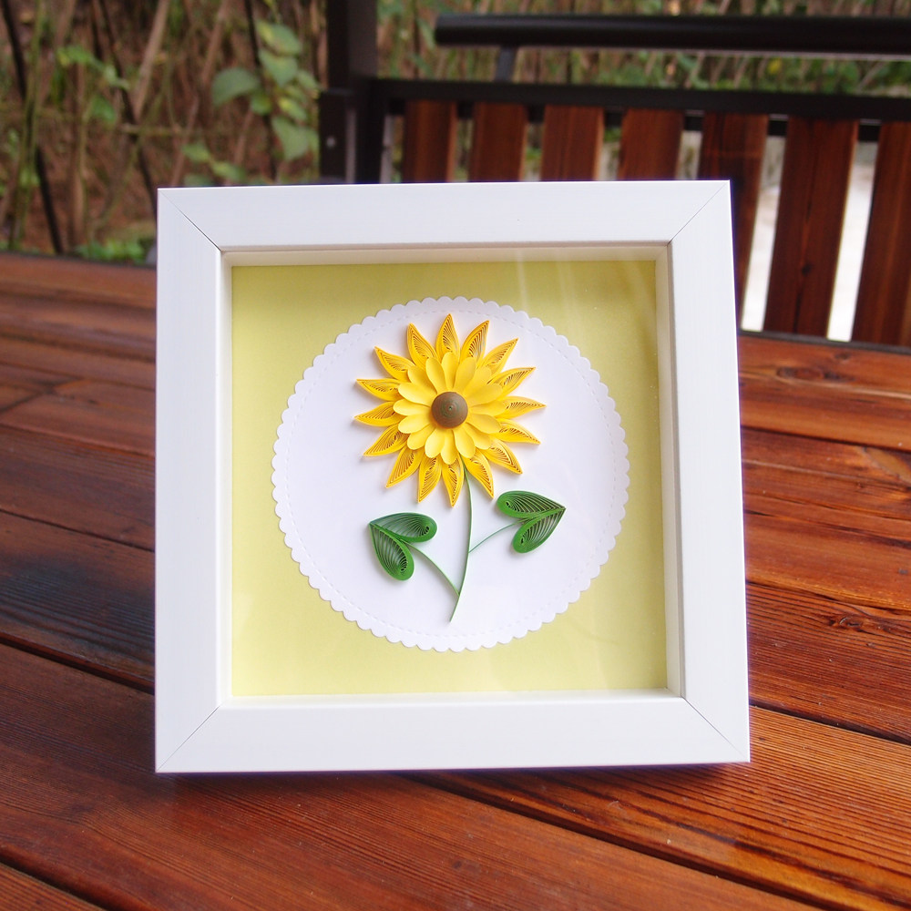 Sunflower roll paper Simple PS edge photo frame Handmade three-dimensional hollow picture frame white square 6 inches 8 inches