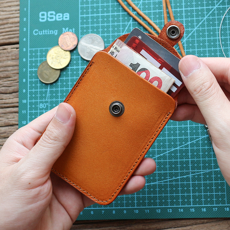 Original tanning bull pickup bag with neck rope retro leather leather bus card pack portable change wallet tide