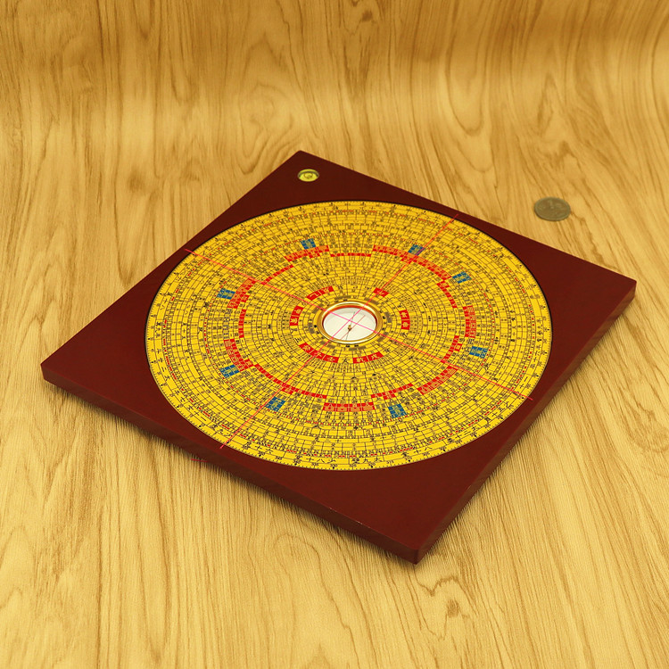 Set Fu Hall 9 Inch Feng Shui Compass Professional RMBthree Tri-combined Luo Gengcast Bronze Engraved word inner circle disc full copper plate