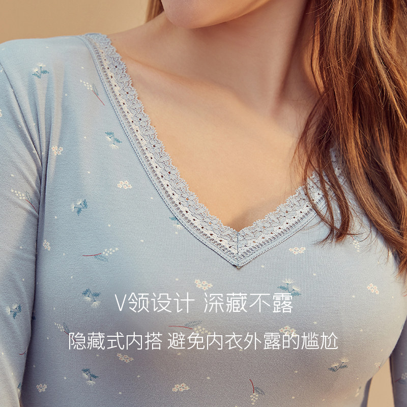 Dingguagua new thin section thermal underwear Dingpipi ladies cotton printed comfortable long johns cotton sweater