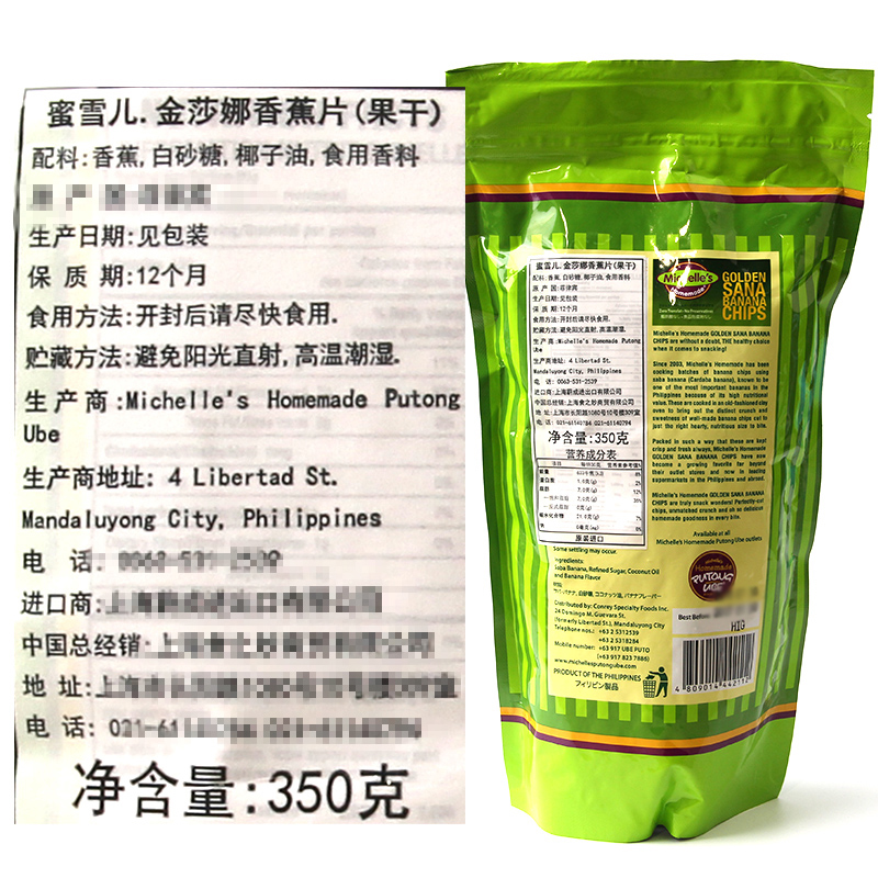 Philippines dried banana slices Michelle Jinshana banana chips 350g*2 bags of imported dried fruit leisure snacks