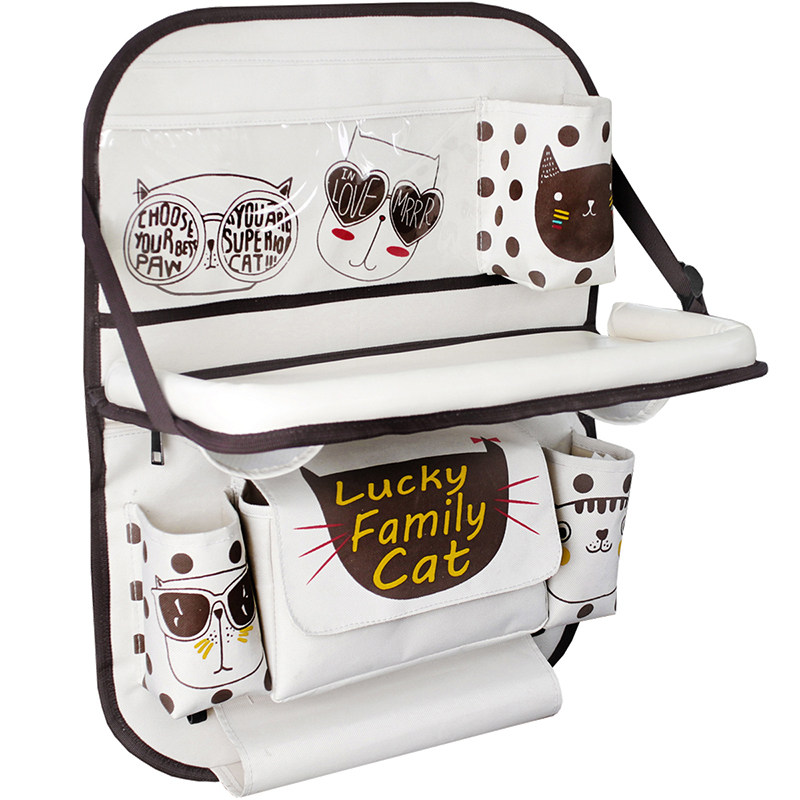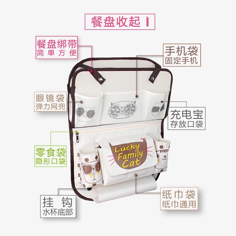 Car seat Rear folding plate table Car baby supplies cartoon storage hanging bag Car seat back storage bag
