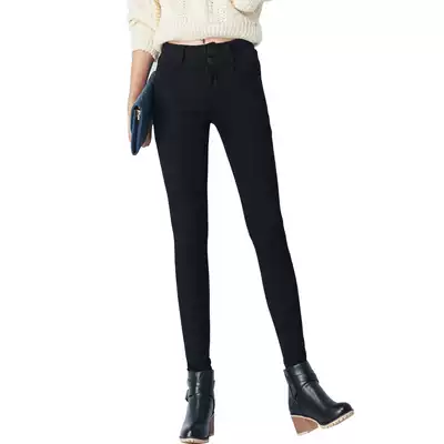 Winter black plus velvet jeans female Korean version of high waist stretch thin plus velvet thick pipe pants warm boots pants length