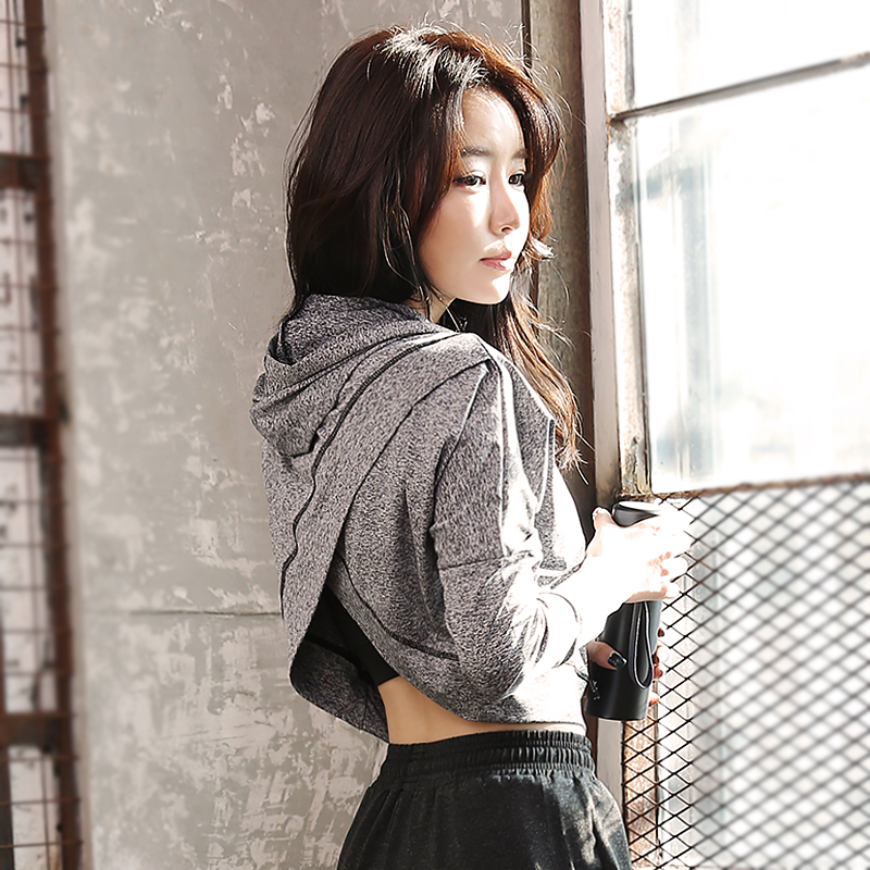 Beautiful back sports blouse Women's loose fitness suit Jacket hooded long-sleeved running quick-drying coat Yoga top hoodie