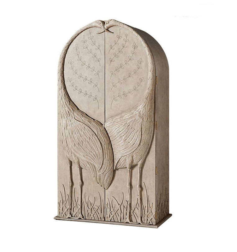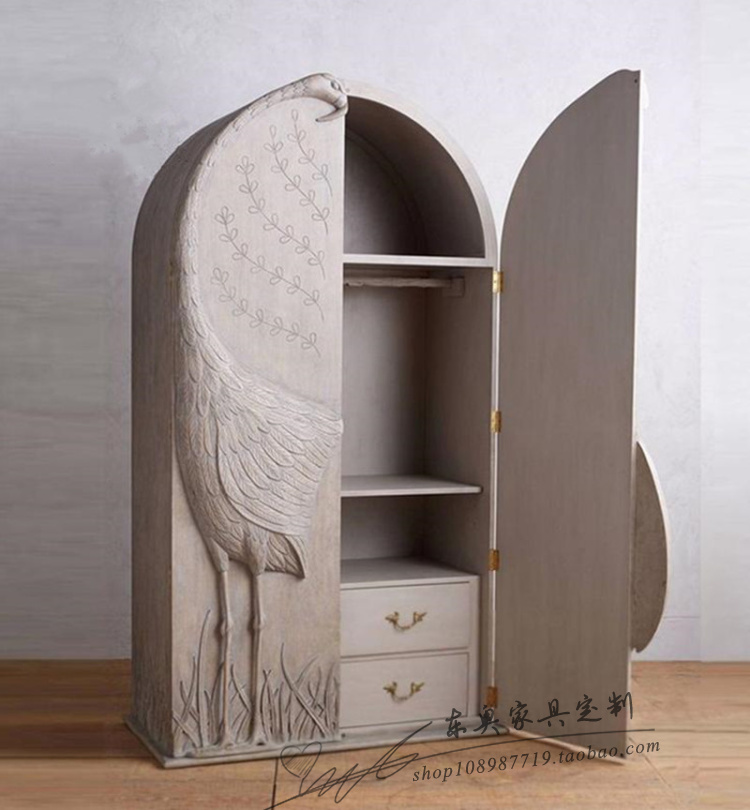 American light lavish wardrobe decorated cabinet embossed crane bird two doors lockers French style retro animal pattern sculpted closet-Taobao