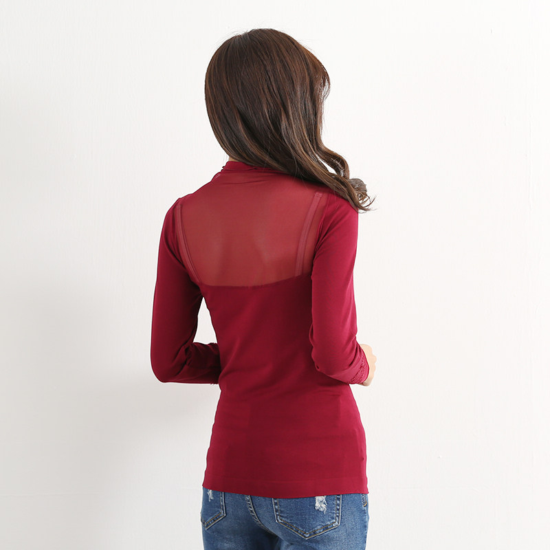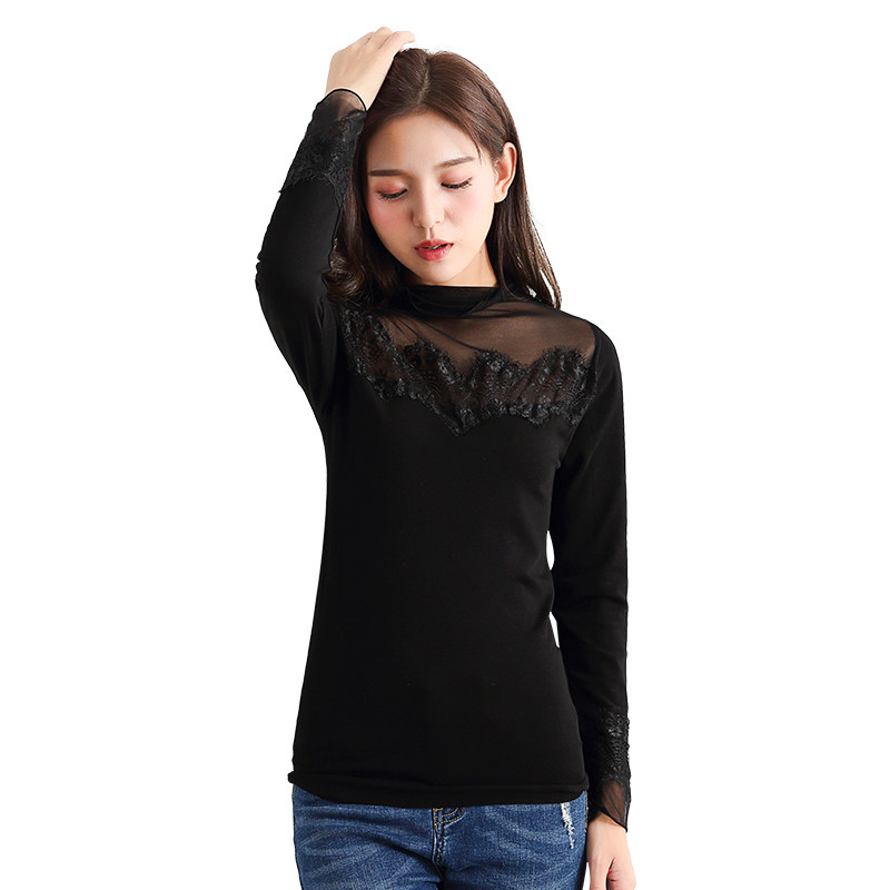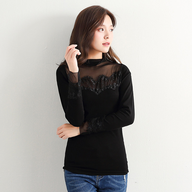 Thin-style spring and autumn clothes body and body long sleeve female beating bottom shirt lace mesh yarn outside wearing yarn collar fever sweatshirt