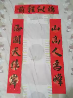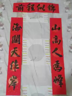 Shankao Man-made Peak, sea, wide sky, shore, Wuyun Mountain Man-made Photo Trail, Calligraphy, Million-year-old Red Five-character Spring Couplets, Colored Rice Paper
