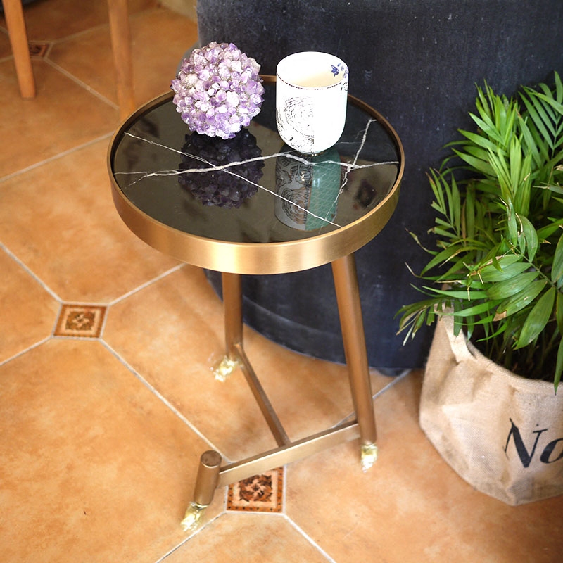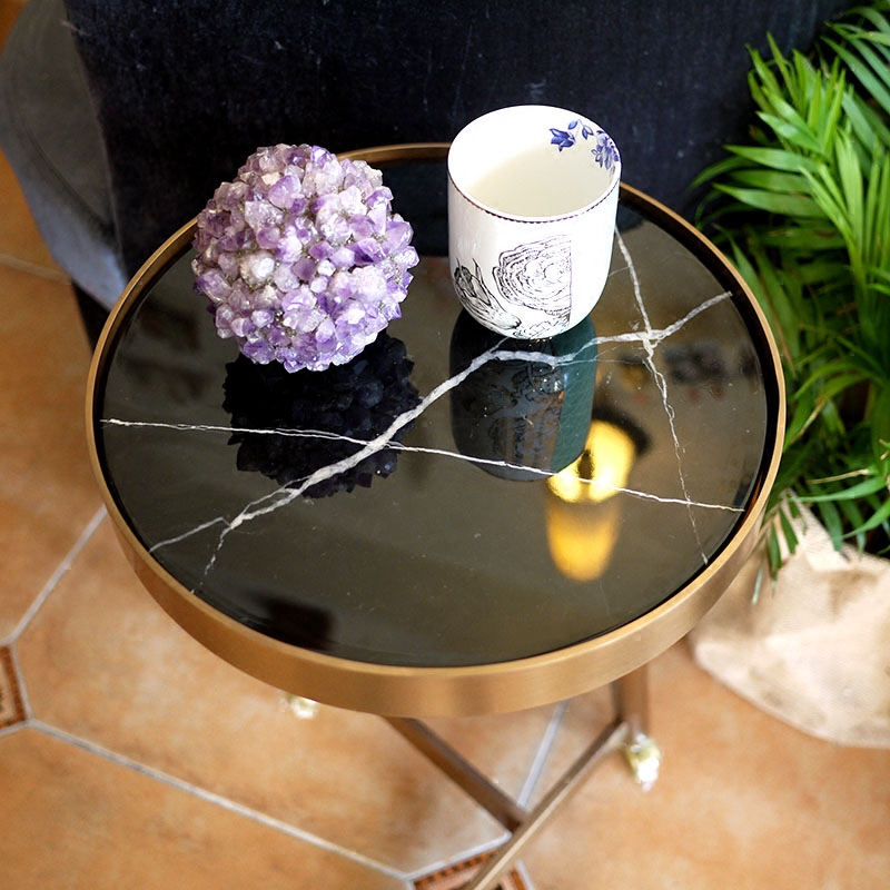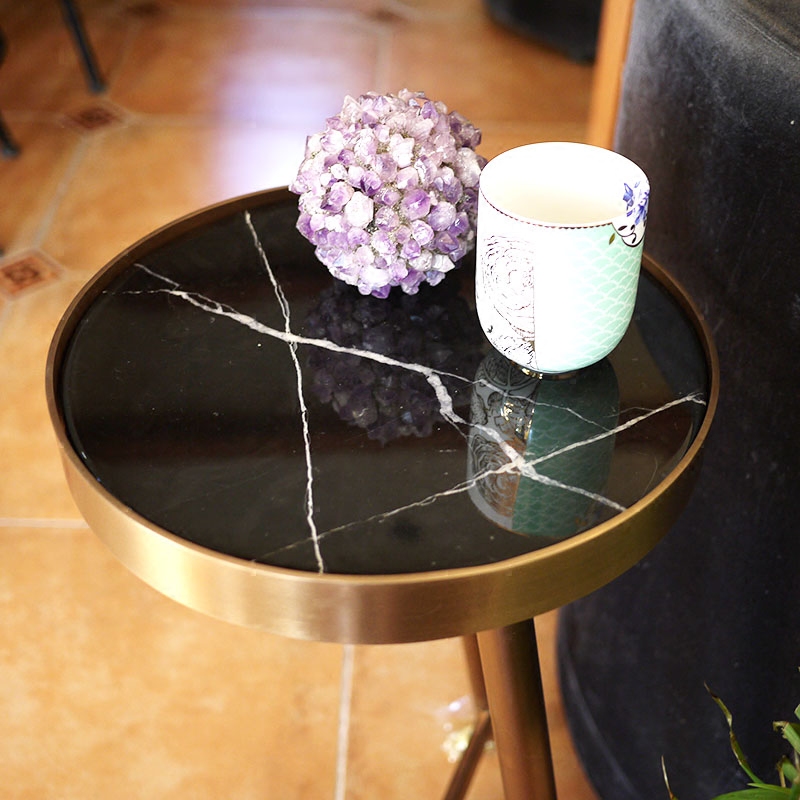 W1962 Nordic style metal bronze color natural black white marble tea table pulley edge a few sofas