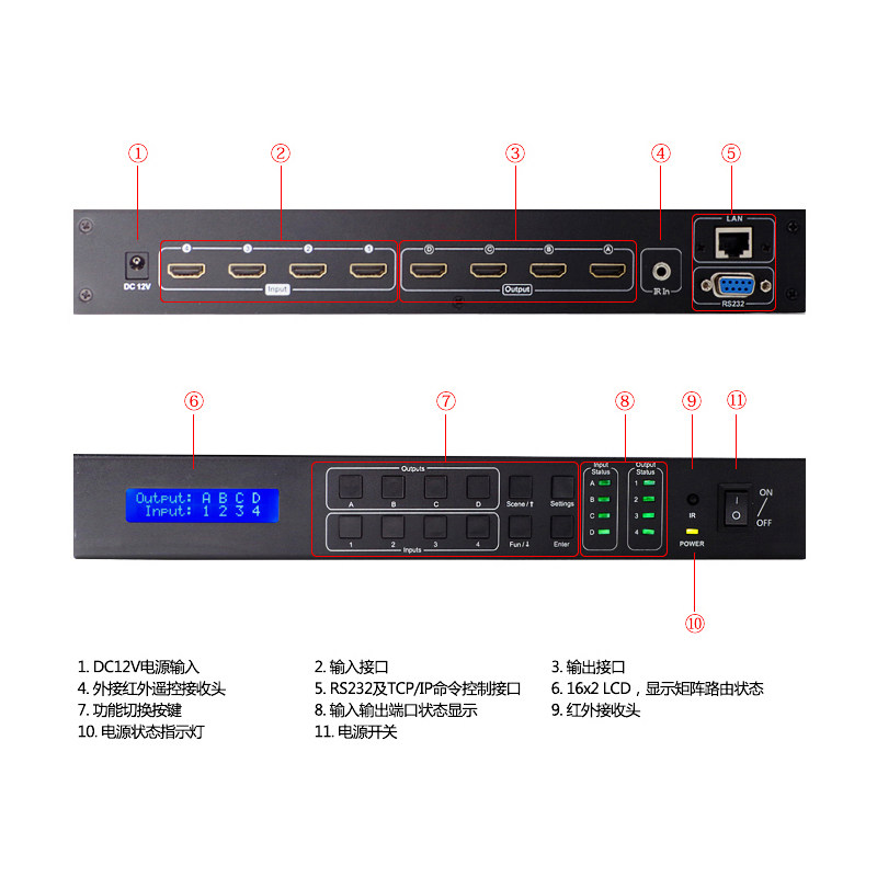 Digital matrix switcher video matrix host hdmi engineering matrix 4 in 4 out with remote control RS232 network interface