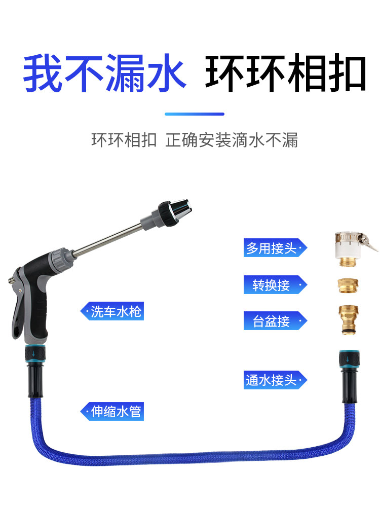 High pressure car wash water gun grab household artifact Telescopic water pipe hose nozzle punch car tools Tap water pump set