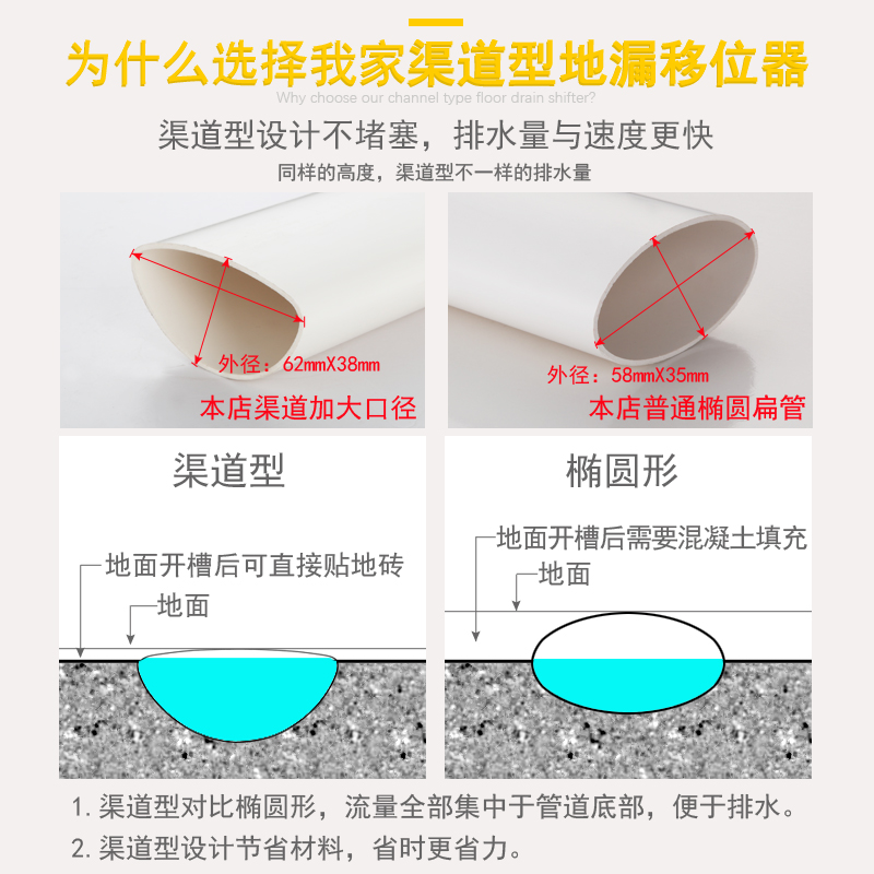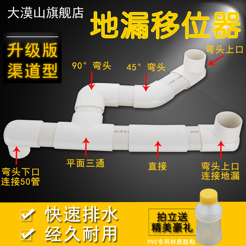 Channel type pvc50 tube floor drain shifter Balcony Make-up Room Flat Tube Shift Tube Launching Shift Elbow Tee