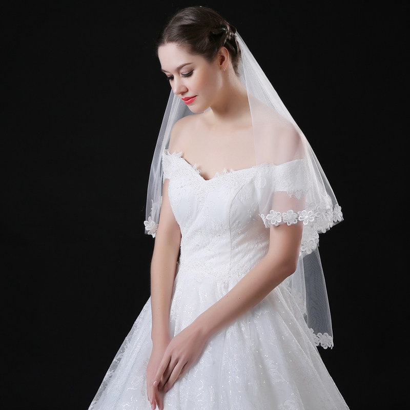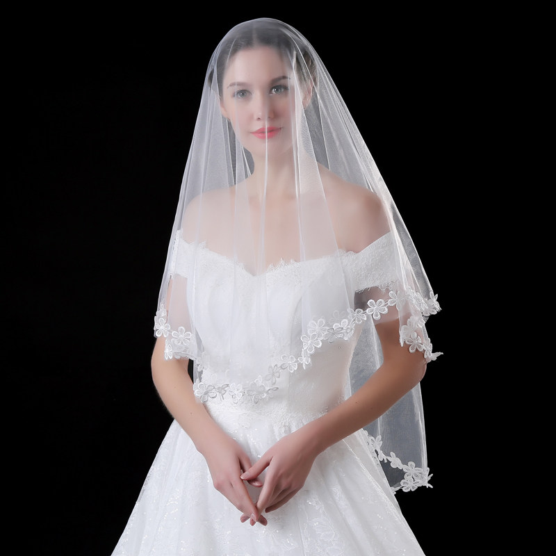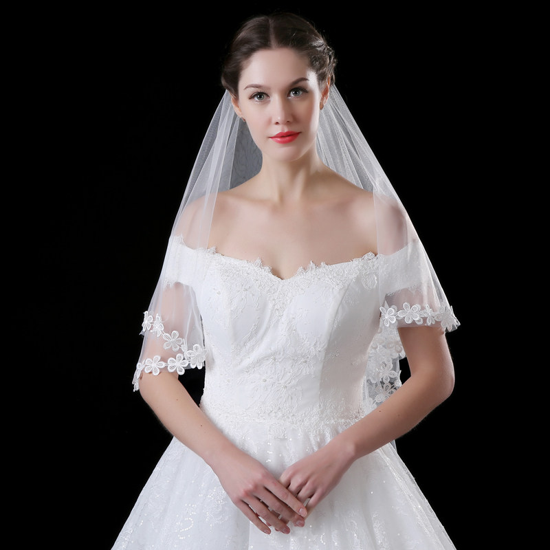 Bridal wedding veil 1 5 meters small lace simple and beautiful medium and long version of the wedding dress waist-high veil