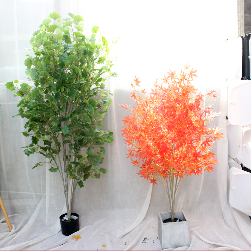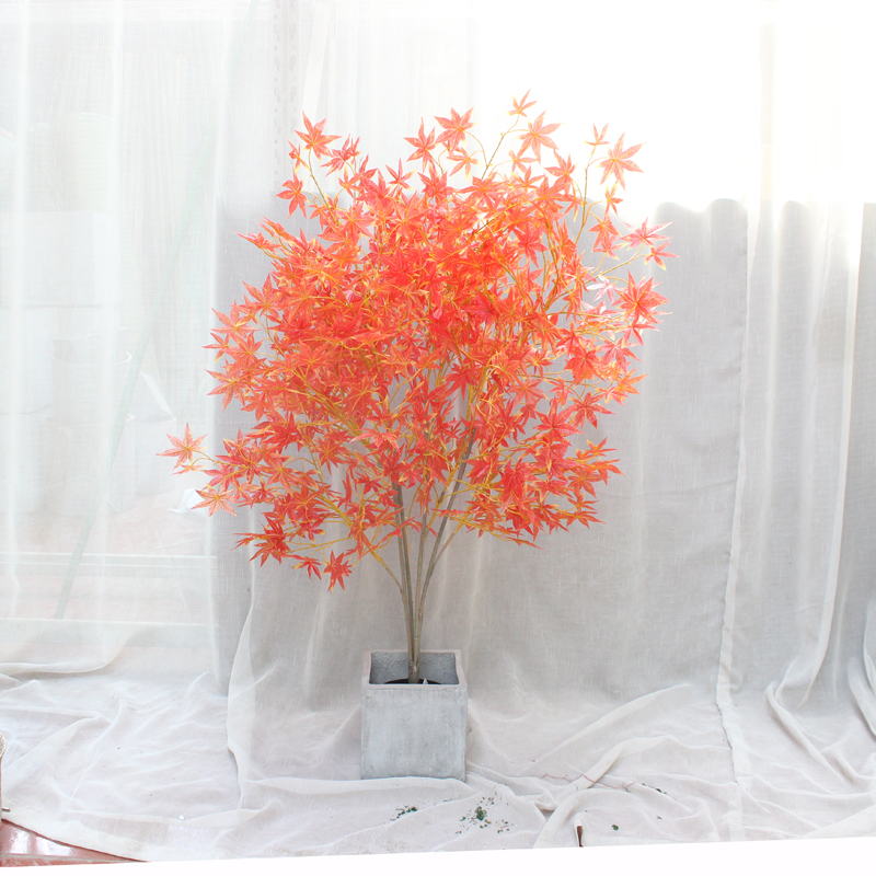 Simulation Red Maple Tree Green Banyan Tree Ground Simulation Green Plant Fake Tree Maple Leaf Tree Living Room Hall Decoration Maple Leaf Emulation Flower