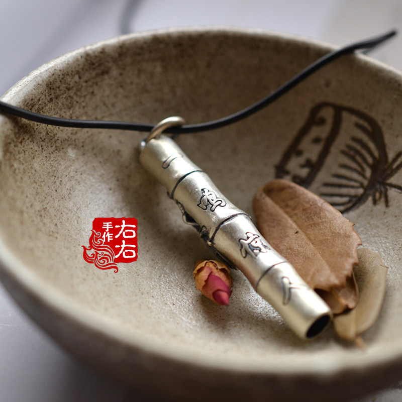 S990 foot silver frosted as the old bamboo whistles a stunning whistleblowing styling necklace item pendant and gift box