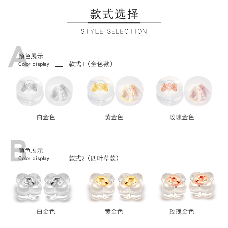 18k Gold Sterile Silicone Anti-Slip Platinum Earplug Earbuds Ear Back Ear Pin Hat Rose Gold Accessories