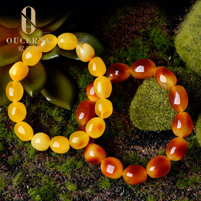 Ozeni amber beeswax hand string with shape single circle hand chain Natural Chanterelle Yellow Baltic Rough stone Men's and women's accessories