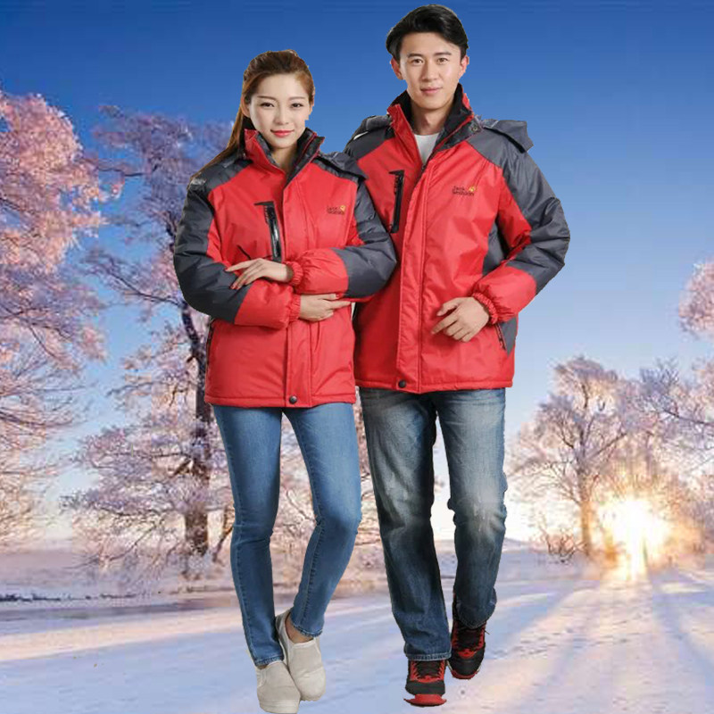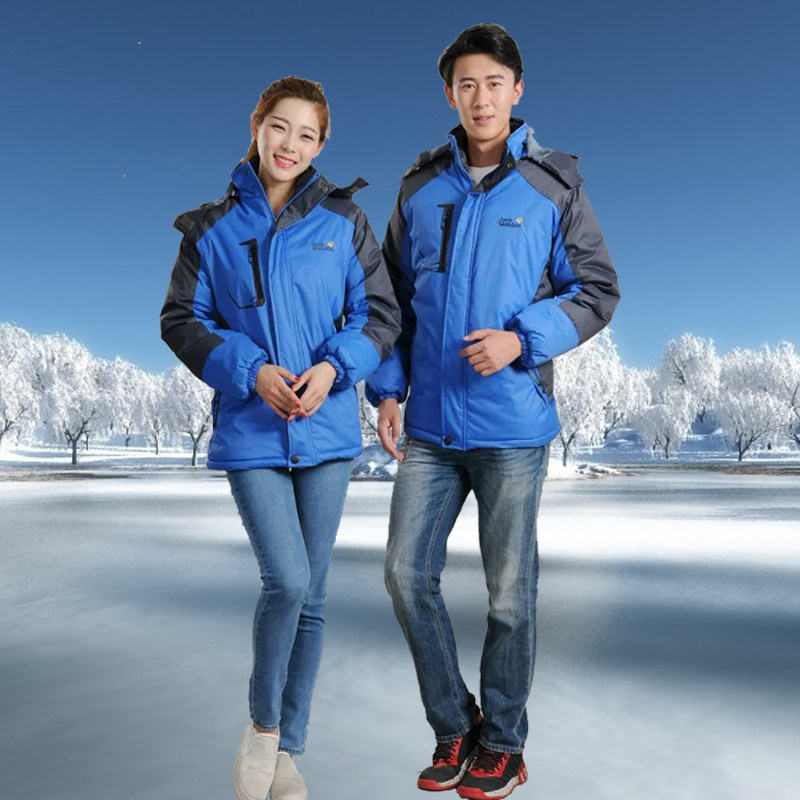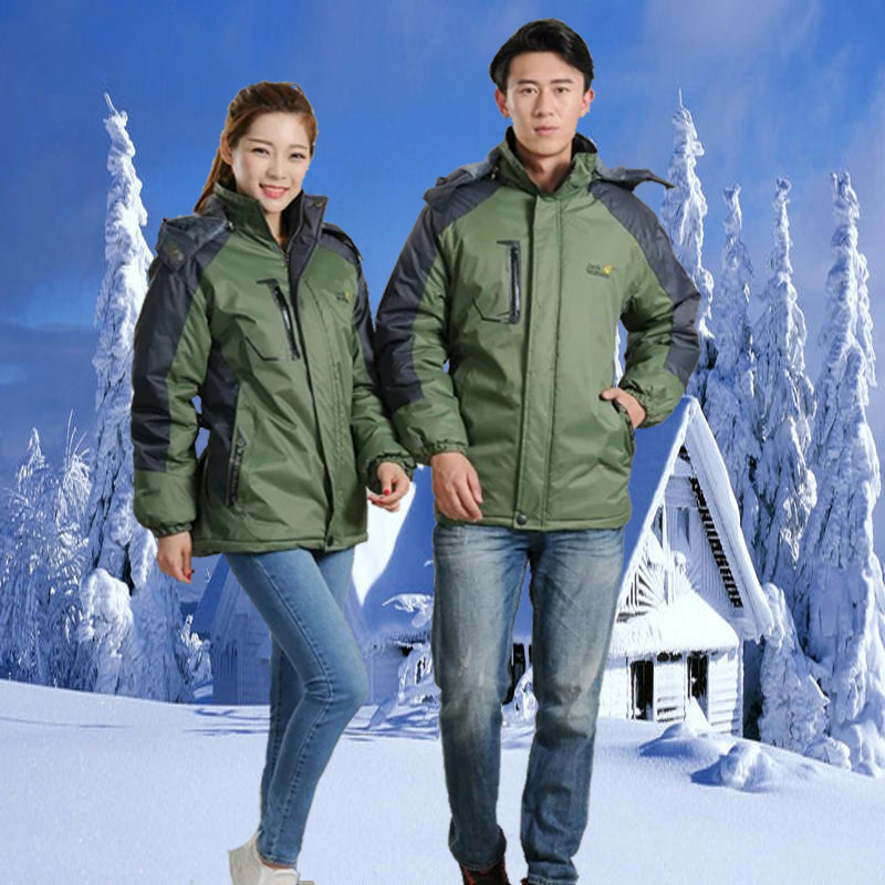 Winter warm jacket men and women couple plus velvet thick outdoor mountaineering and skiing winter clothing work cotton jacket