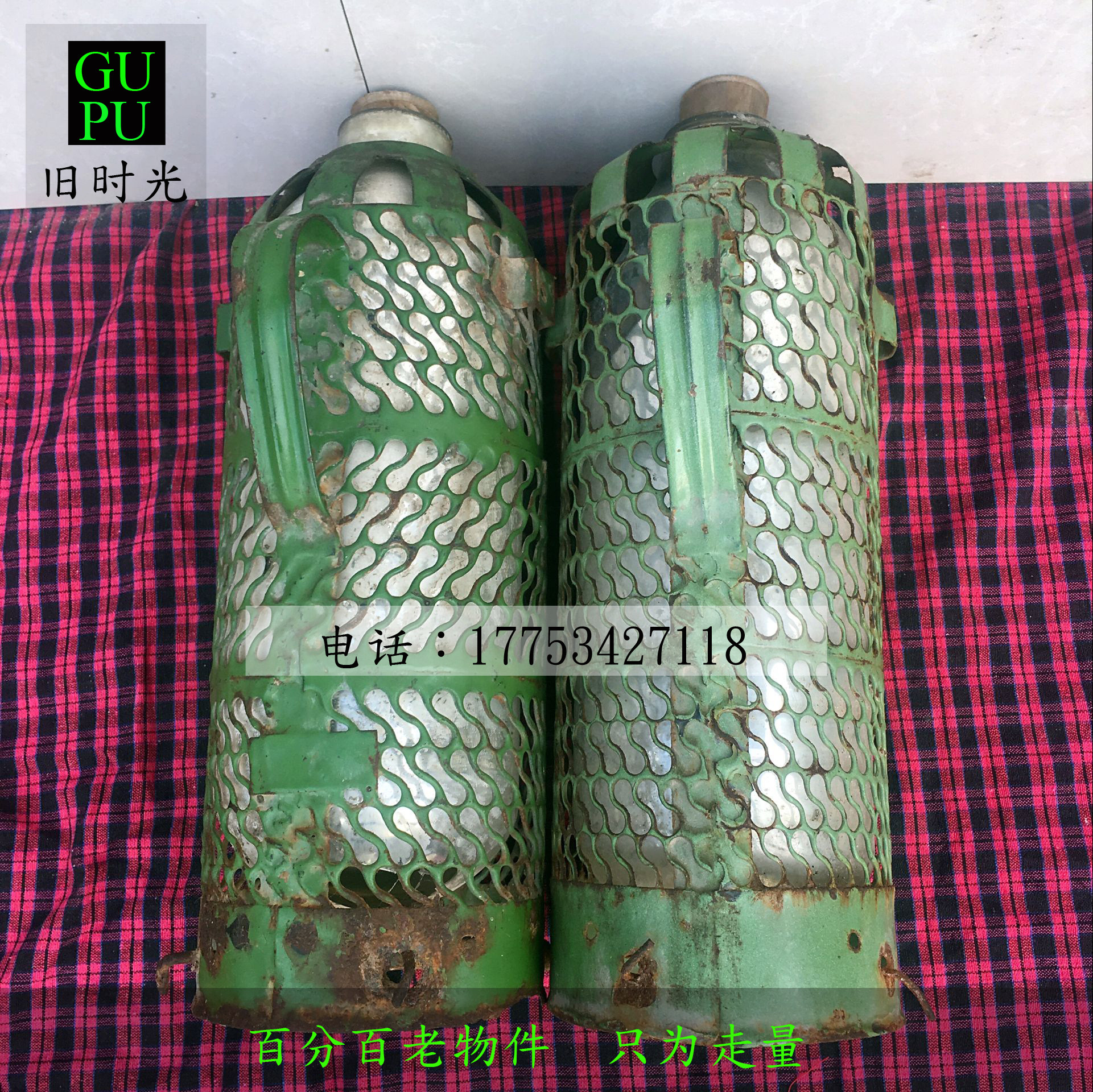 Folklore nostalgia old objects old warm water bottle old insulated bottle pot green old Tin Tin warm pot prop old stock old stock