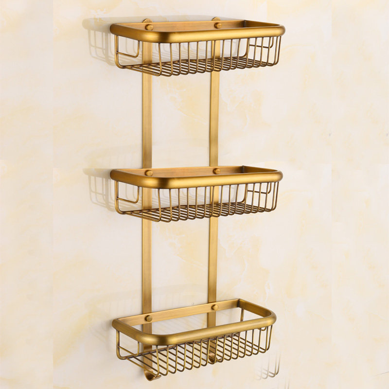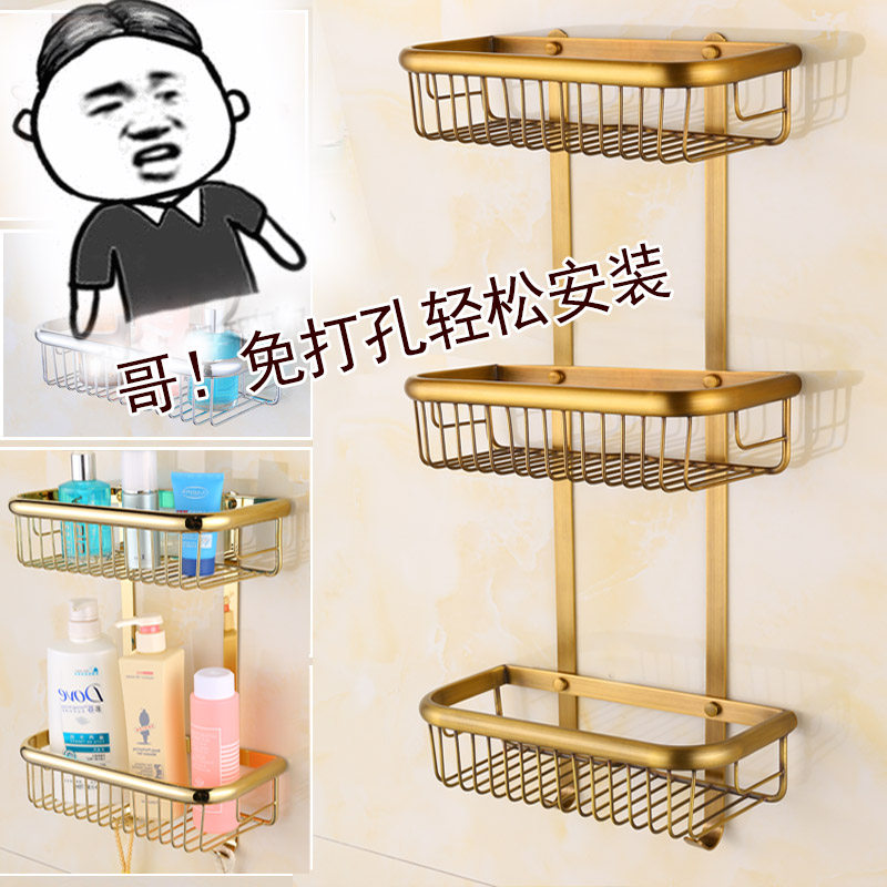 Bathroom racks without punching all copper shampoo to put things on the shelf cosmetic storage shelf golden 3 layers