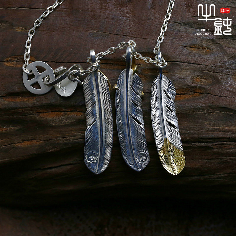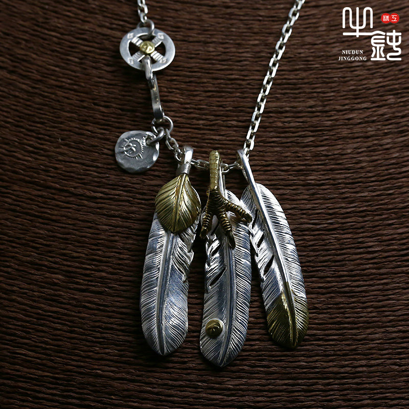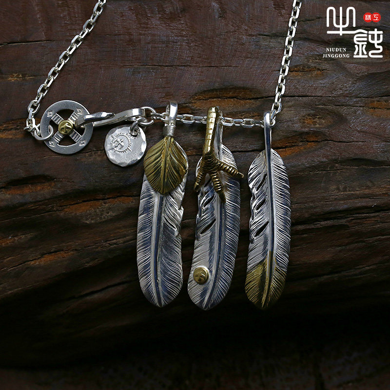 Cattle blunt precision Takaqiao three feather necklace set fine angle corner pendant 925 pure silver sleeve chain