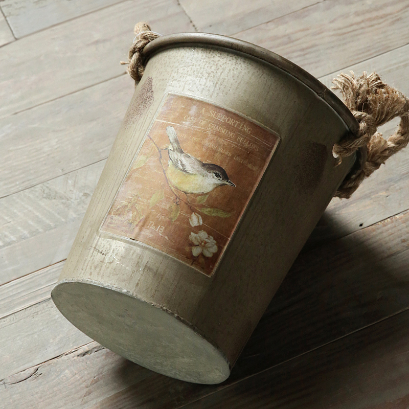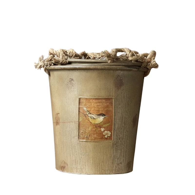 Carle American Retro Made Old Decoration Props Iron Art Hemp Rope Double Ear Bucket Containing Basket Storage Basket Four Sets
