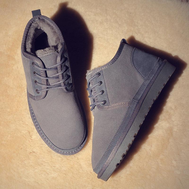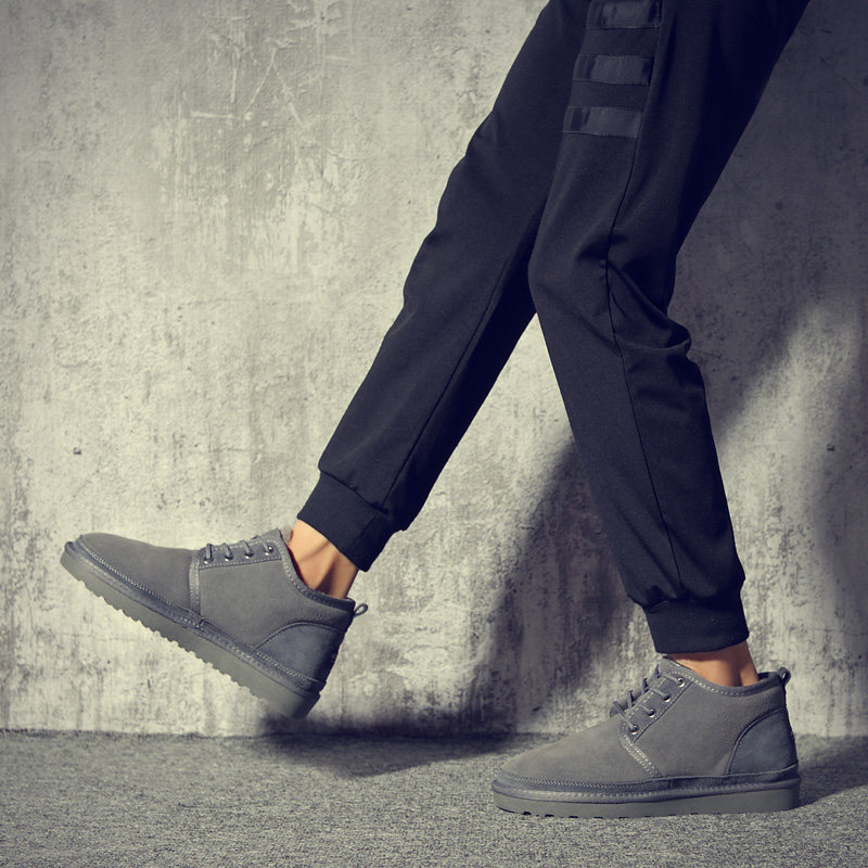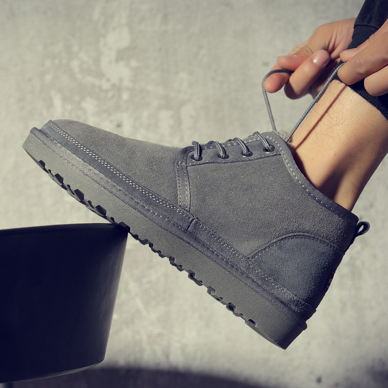Snow boots men's shoes British winter shoes men's short boots plus velvet warm non-slip cotton shoes non-slip waterproof bread shoes