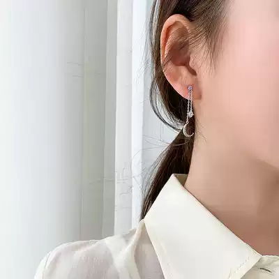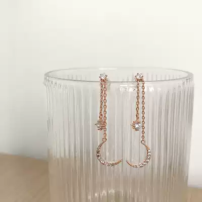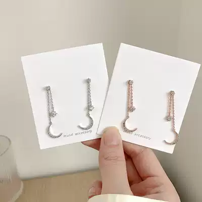 Mousse small d Star Moon temperament tassel earrings long version fresh super fairy without ear hole ear clip ear needle female ear ornaments