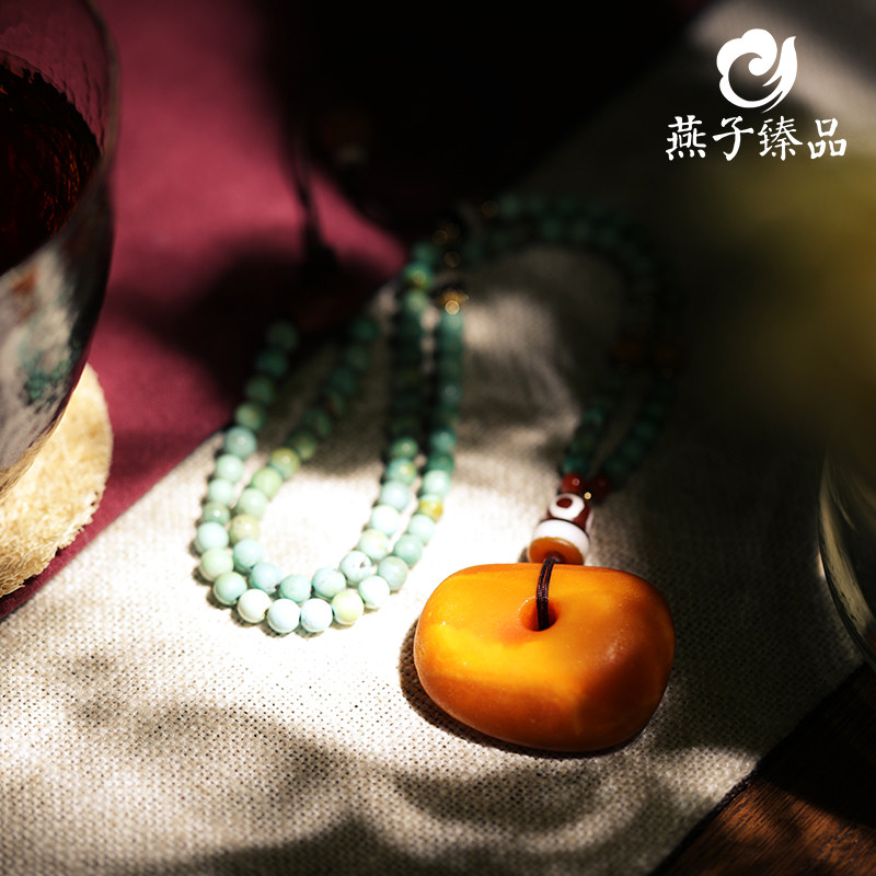 (Yanzi Zhen) 17 34 gr Natural Old Honey Wax Safe Button Pendant Chicken Oil Yellow Amber Cake Subnecklace