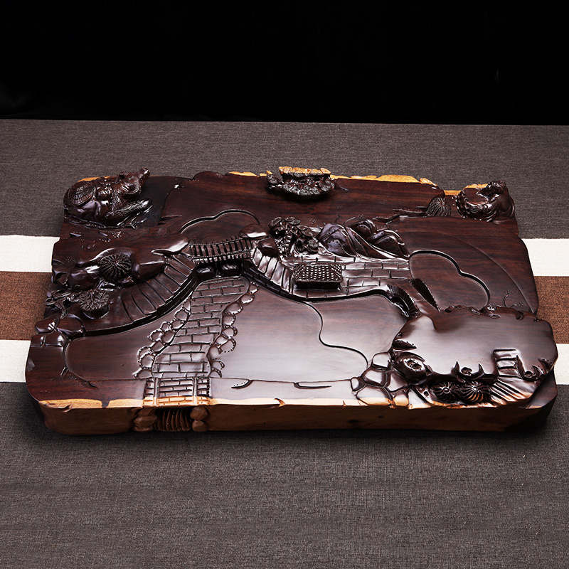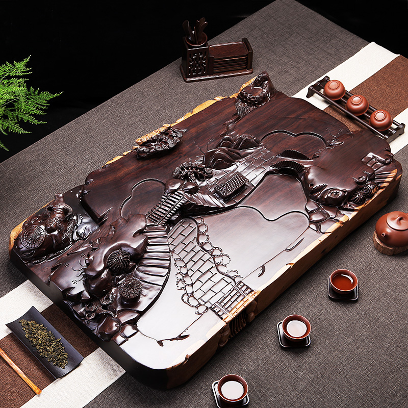 Multi-layer ebony tea tray tea table kung fu tea set tea sea whole piece of solid wood household tea tray large drainage
