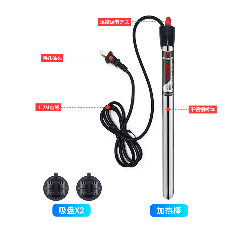 Western Dragon Fish Tank Heating Rod Automatic Thermostatic Small Aquarium U Tortoise Tank Stainless Steel Mini Explosion Protection Warming Rod-Taobao