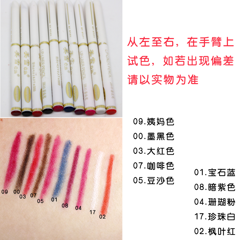 No. 0 (Eye Line Pen Black) No. 1 Baoshi Blue 2 West Grapefruit 3 Great Red 4 Coral Pink 5 Number of Pink Red 7 Coffee Color 8 Number of Purple Color 9 Wine Red 17 (Sleeper Pearl White)
