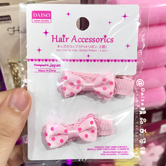 Japanese DAISO student children with cute polka dot lace bow hair clip edge clip hair ornament