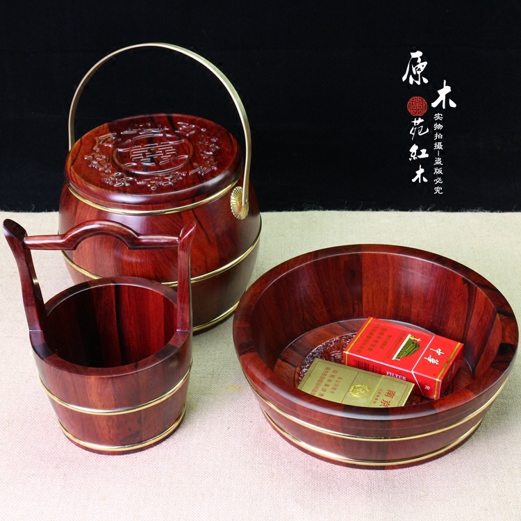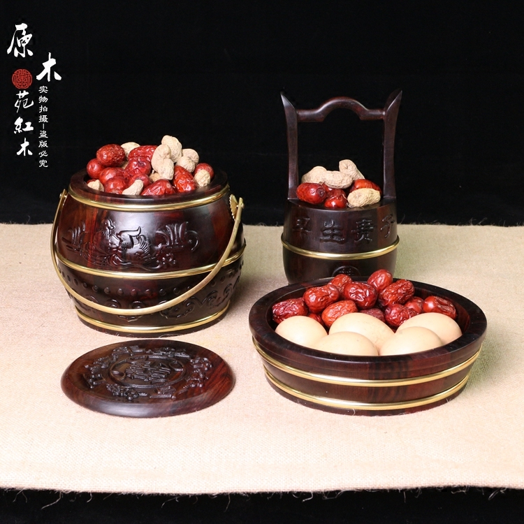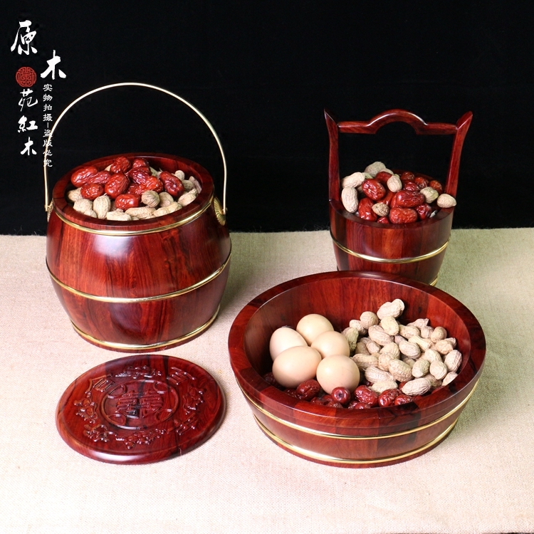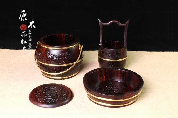 Solid wood red wood children and grandchildren barrel swinging pieces large red and sour branches carved flowers and grandchildren barrel Three sets of wedding paternity supplies Gift-Taobao