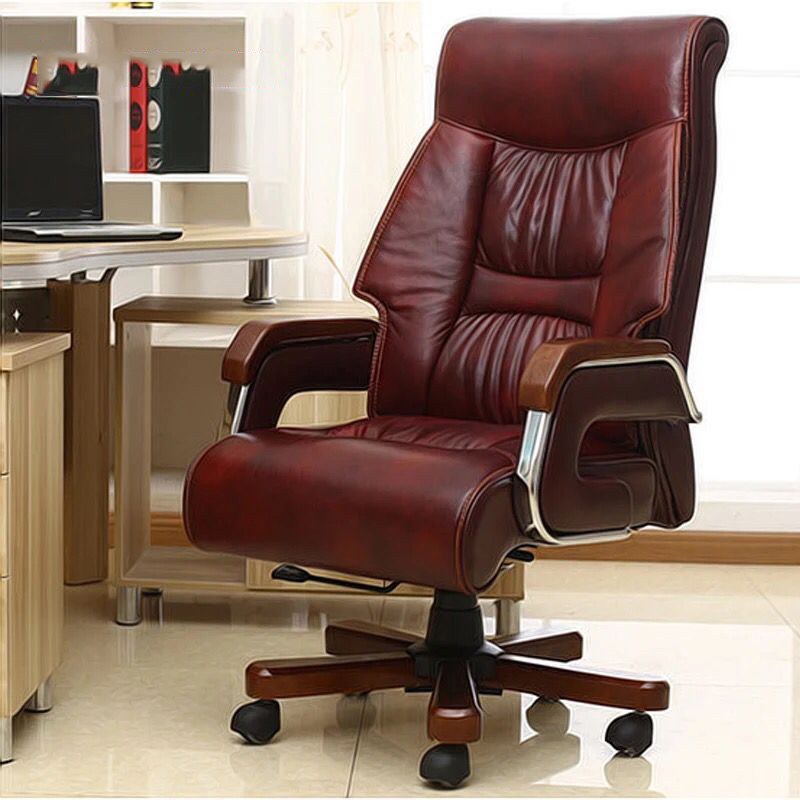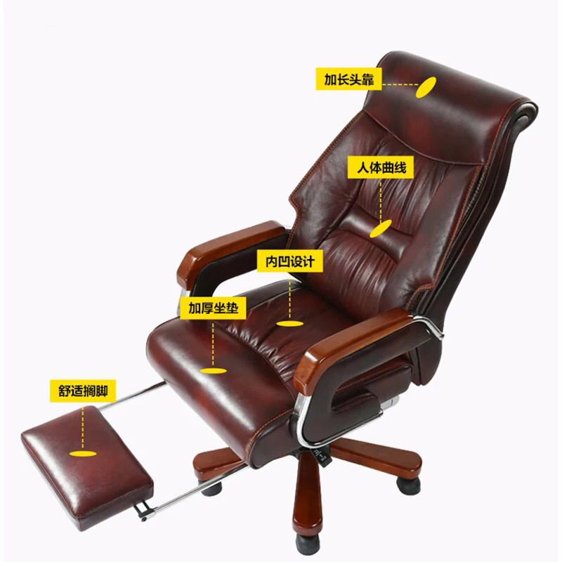 Osteiya solid wood armrest boss chair reclining manager office chair home study computer chair lifting leather chair