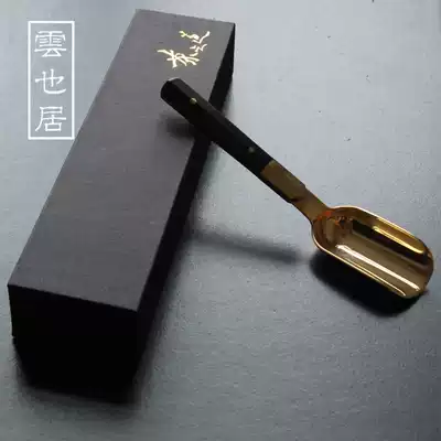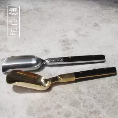 Damascus steel tea spoon Steel solid wood handle Brass teaspoon tea tea shovel Tea ceremony zero with six gentlemen