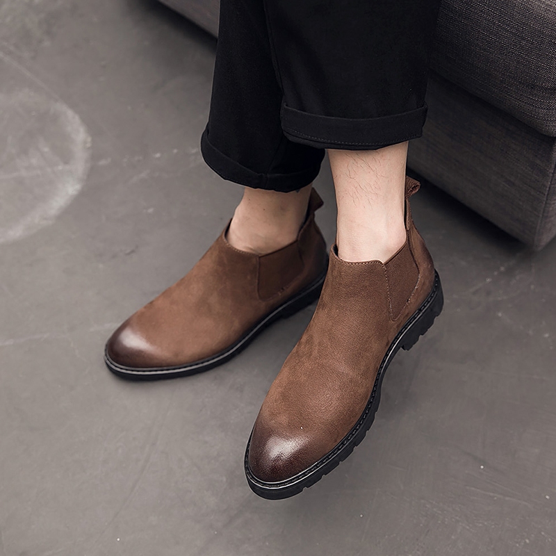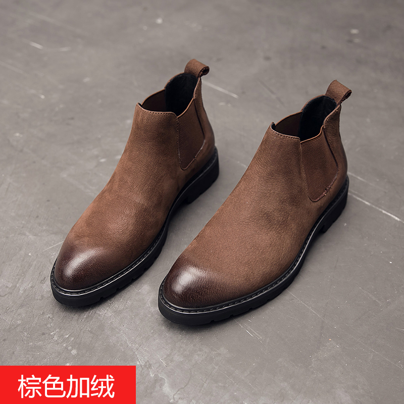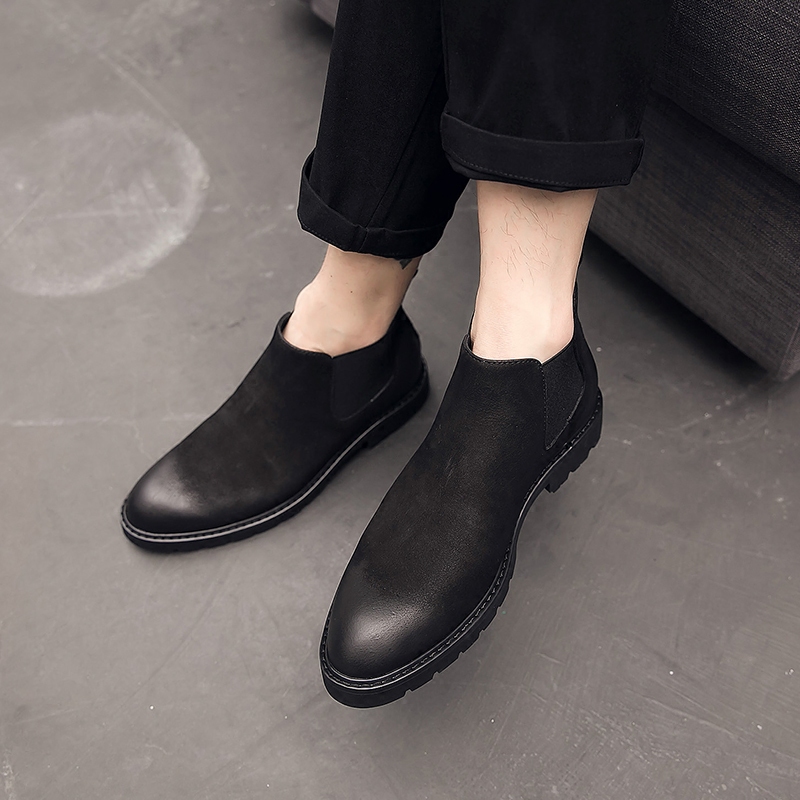 Autumn Winter models Chelsea boots Men's short boots genuine leather black high cylinder shoes European and American Inlen pointed midcylinder Martin boot male tide